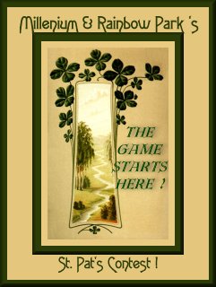 Sure and begorra, ye are all welcome to enter the Millennium and Rainbow Park St. Paddy's Day Contest, with a chance to win some bonny prizes! Simply follow the riddles, to each numbered 4 leaf-clover, to find The Pot O' Gold! We Leprechauns have hidden it well, so best of luck to ye!